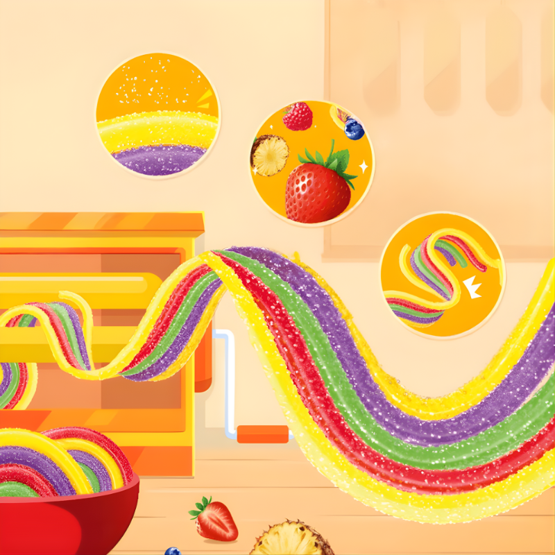 Long, noodle-style rainbow gummies