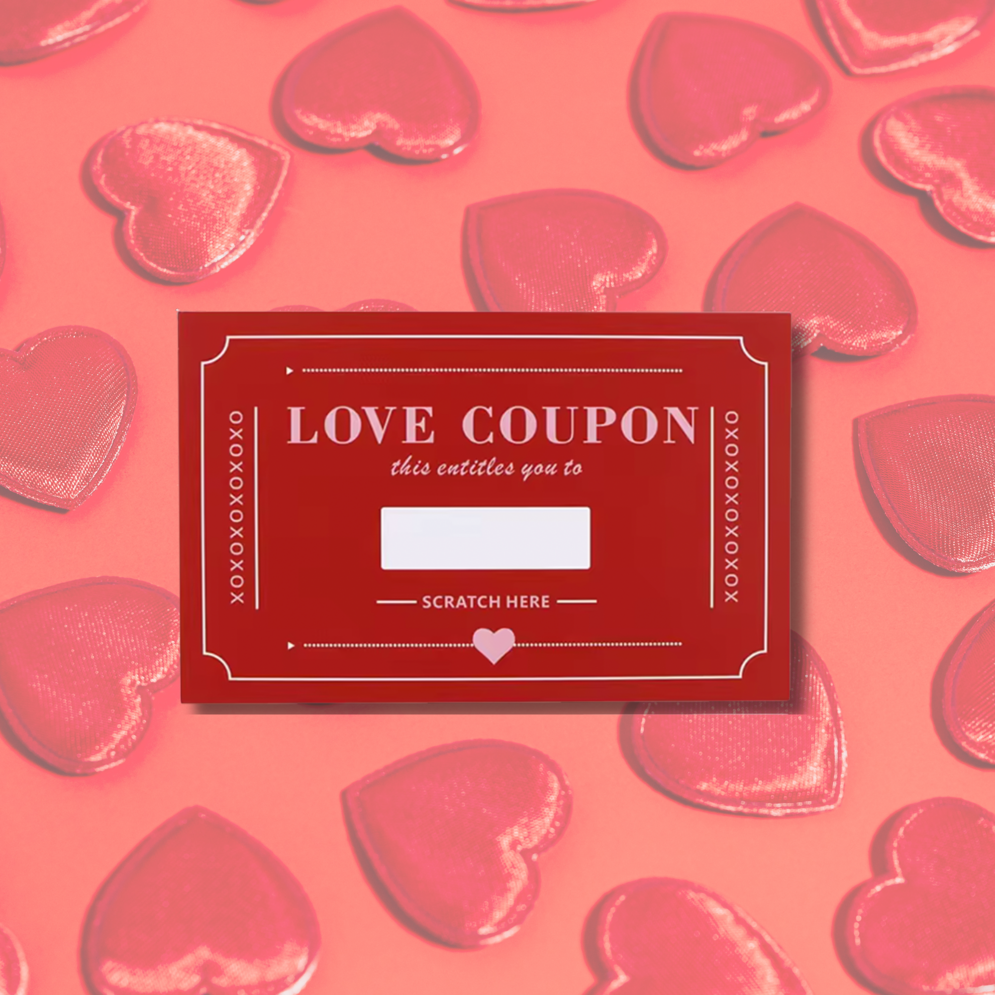 This Valentine’s scratch-off love coupon card is a fun, personal way to say what words alone can’t. Each card includes a hidden message revealed by scratching; perfect for romantic notes, inside jokes, or sweet surprises.